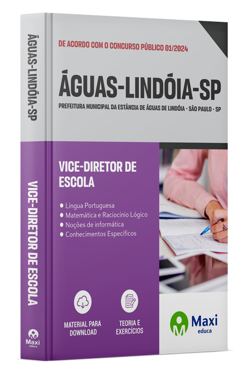 Apostila completa e atualizada para o concurso da Prefeitura da Estância de Águas De Lindóia - SP 2024, cargo Vice-Diretor de Escola.