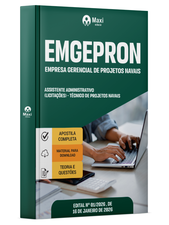 A Apostila Digital Empresa Gerencial de Projetos Navais em PDF 2026 - Técnico de Projetos Navais - Assistente Administrativo (Licitações) foi organizada para proporcionar um melhor rendimento na sua preparação, abordando cada conteúdo de forma objetiva e direcionada. Estude para o Concurso da Empresa Gerencial de Projetos Navais 2026 com um material de acordo com o Edital oficial para o cargo de Técnico de Projetos Navais - Assistente Administrativo (Licitações).