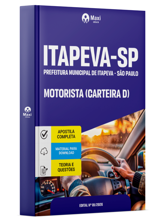 A Apostila Digital Prefeitura Municipal de Itapeva - SP em PDF 2026 - Motorista (CNH D) foi organizada para proporcionar um melhor rendimento na sua preparação, abordando cada conteúdo de forma objetiva e direcionada. Estude para o Concurso da Prefeitura Municipal de Itapeva - SP 2026 com um material de acordo com o Edital oficial para o cargo de Motorista (CNH D).