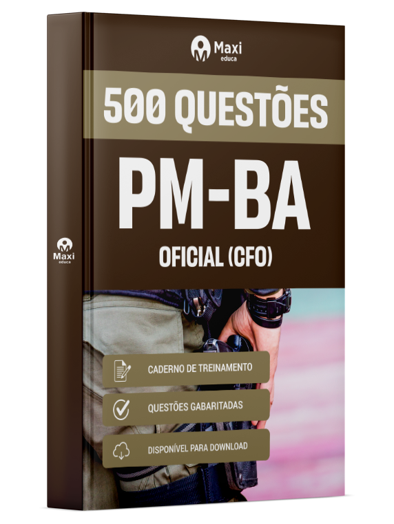 Liberação prevista para: 27/04/2026Caderno de Questões PM-BA - Oficial (CFO) - 500 Questões Gabaritadas