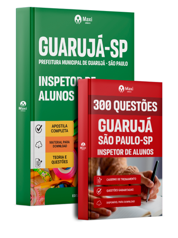 - Apostila Prefeitura de Guarujá - SP 2026 - Inspetor de Alunos: reúne todo o conteúdo teórico exigido no último edital, com explicações claras e exercícios práticos elaborados por especialistas em concursos.